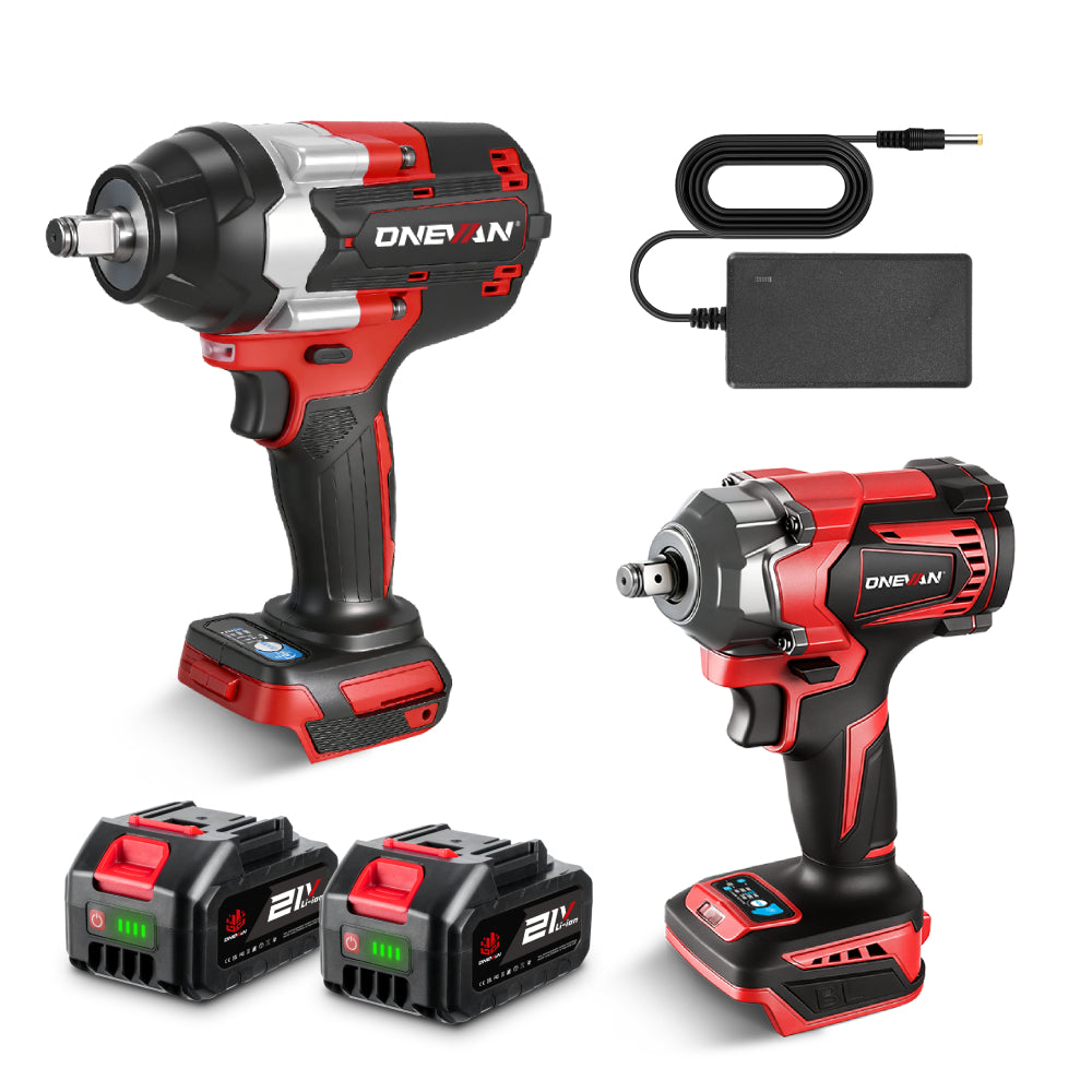 ONEVAN 1/2" 1200N·m & 1/2" 1800N·m Impact Wrench Brushless Cordless 2-Pc. Combo Kit 3.0Ah